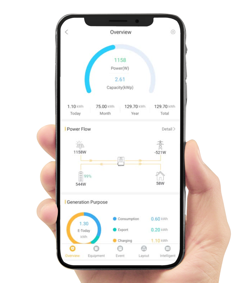 This package includes x6, 430W solar panels, 3.6kW hybrid inverter and 5.32kW battery.